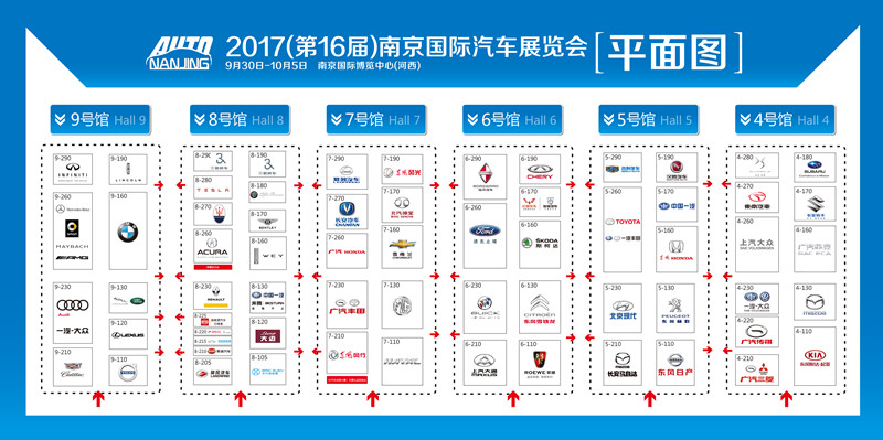 本届车展启用南京国际博览中心(河西)4-9号六个室内展馆及室外场地,各品牌单体展出面积全面升级。其中一汽丰田室内单体参展面积升级为1500㎡,成为本届车展最大展台;长安福特、奔驰、奥迪、东风悦达起亚等汽车品牌的单体展出面积将超1000㎡;宝马、东风标致、别克、东风雪铁龙、北京现代、斯柯达、上汽大众等汽车品牌单体展出面积也将在800㎡以上;WEY、阿尔法罗密欧、一汽森雅、汉腾、北汽新能源、奇瑞新能源、东风风光、斯威等汽车品牌将首次亮相,加入南京国际车展汽车品牌大家庭,值得关注。