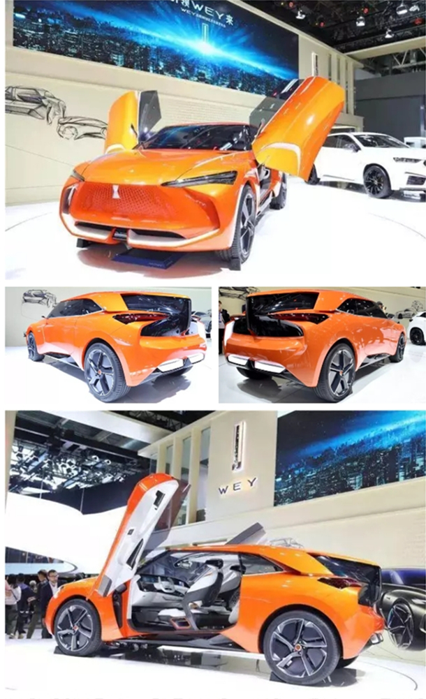这个迅速崛起的中国豪华SUV品牌再次人气爆表,纯电动SUV概念车WEY-X可以说相当惊艳!橙色的车身科技感十足,非常炫酷,充满概念车必备的“未来”元素,时尚犀利的蝶翼门前卫范儿十足,令走过路过的观众无不驻足。