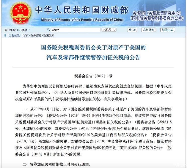 3月31日,国务院关税税则委员会决定,从4月1日起对原产于美国的汽车及零部件继续暂停加征关税,还指出暂停加征关税措施截止时间另行通知。这是继去年12月国务院决定从2019年1月1日起,对原产美国的汽车及零部件暂停加征收关税3个月(1月1日起至3月31日)之后的又一次暂停加征关税,特斯拉、林肯、宝马等品牌车企将继续受益。