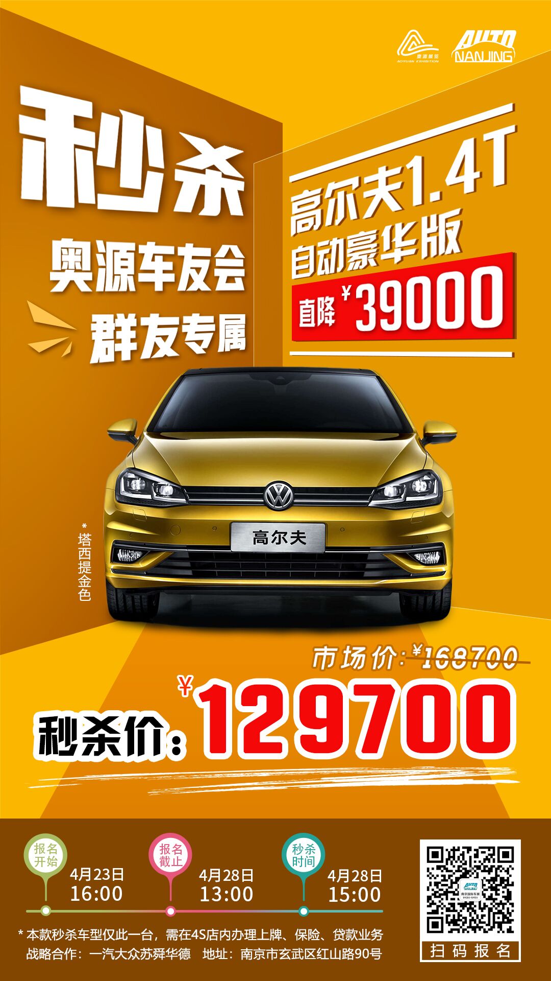 “奥源车友会”秒杀第一弹!一汽大众高尔夫直降39000元!