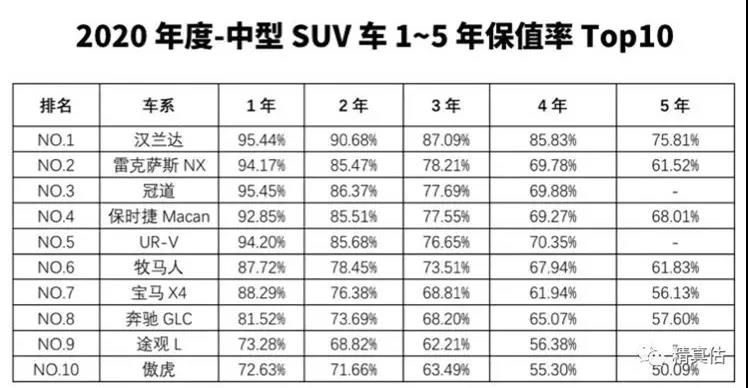 1、汉兰达:拥有超强均衡性的汉兰达,江湖人称汽车界的理财产品,瞅瞅这三年87.09%的保值率,称它一声“保值王”一点也不夸张。江湖有传言,有时候汉兰达的二手车比新车还要贵,只要有货马上没,管它开多少公里,那都无所谓。