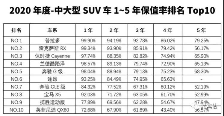 1、普拉多:1年保值率高达99.9%,3年保值率都还有92.78%!皮实耐用的普拉多(停产),保值率数据相当惊人,“开不坏的丰田”名不虚传。