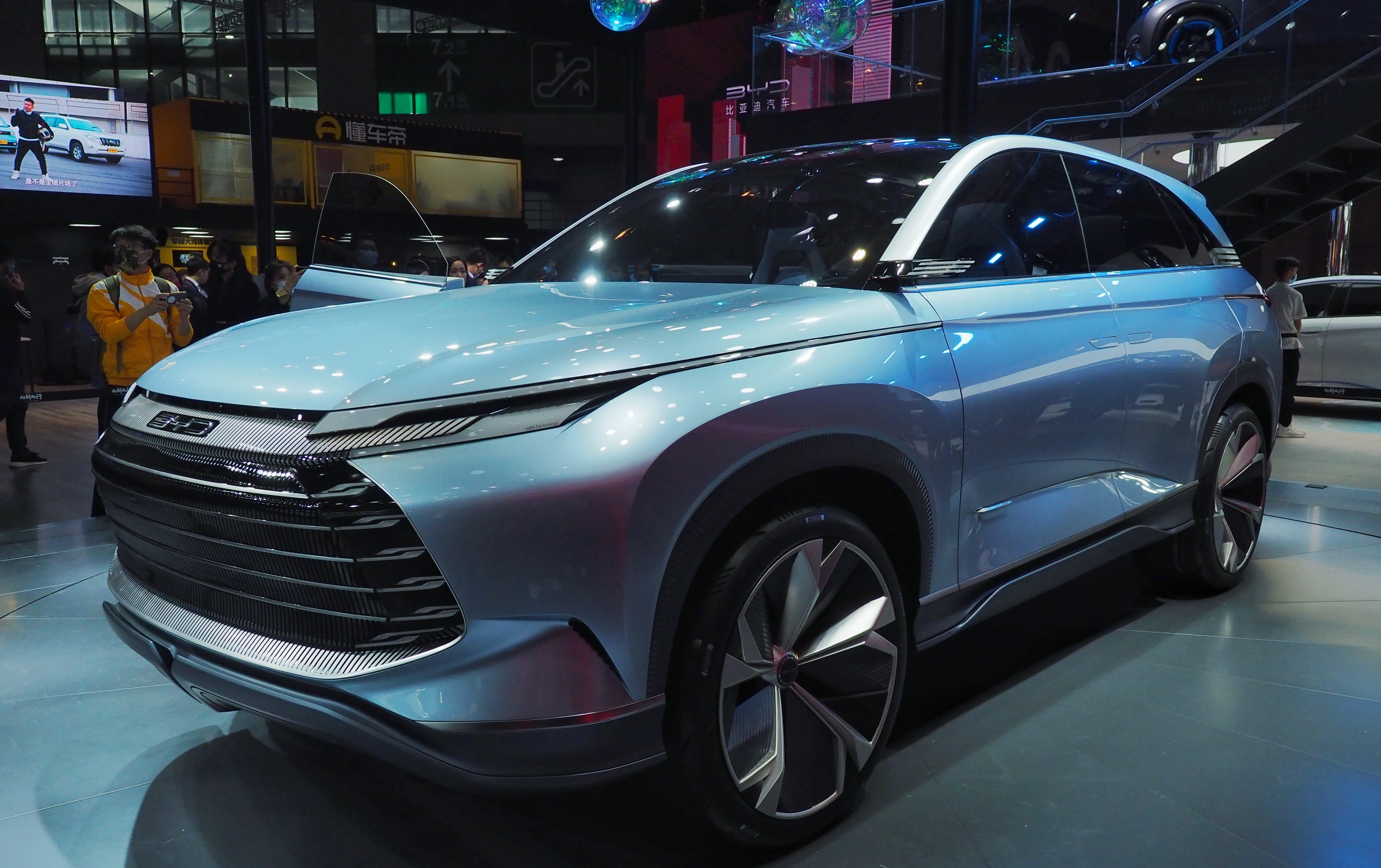 龙颜美学外观,中国结尾灯设计,山水画内饰风格,延续中国梦的命题。比亚迪带来的这款概念车,基于e 平台 3.0 打造,百公里加速 2.9 秒,续航里程最高可达 1000 公里, 5 分钟充电达到150公里。这款车突出中国特色和高级质感,将成为比亚迪如今“Dragon Face”设计语言的继任者。