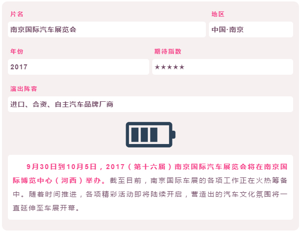 我们在这个热情似火的三伏天,遥望秋高气爽、舒适宜人的金秋时节,经历过酷暑的“烤验”后冷静下来,已经下定决心或者还在犹豫不定的你,在国庆中秋的双重假期,不妨给自己、给爱人、也给家人创造一个专属的汽车空间,来2017(第十六届)南京国际车展看一看,或许这就是你最佳的出手时机。9月30日到10月5日,南京国际博览中心(河西),我们以汽车的名义等你!